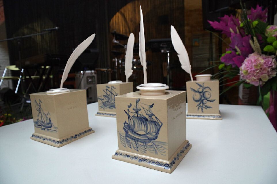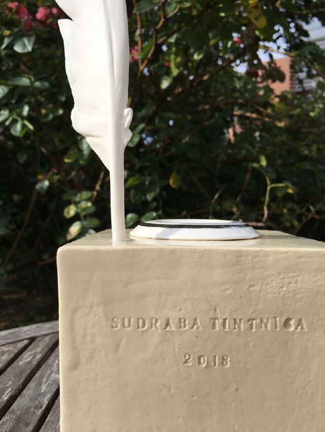 发表了一番获奖感言之后,我发觉手捧的这个奖杯非常特别……特别沉,这是所有奖杯在制作上力图达到的效果。然而,特别易碎,这个问题并非我一个人意识到了,所有获奖者都小心翼翼端着奖杯不敢造次,唯恐立刻碎在当场。主办方的朋友们也不断提醒我,这是全陶瓷的,尤其是上面插着的这一枚栩栩如生的羽毛笔,吹弹得破……