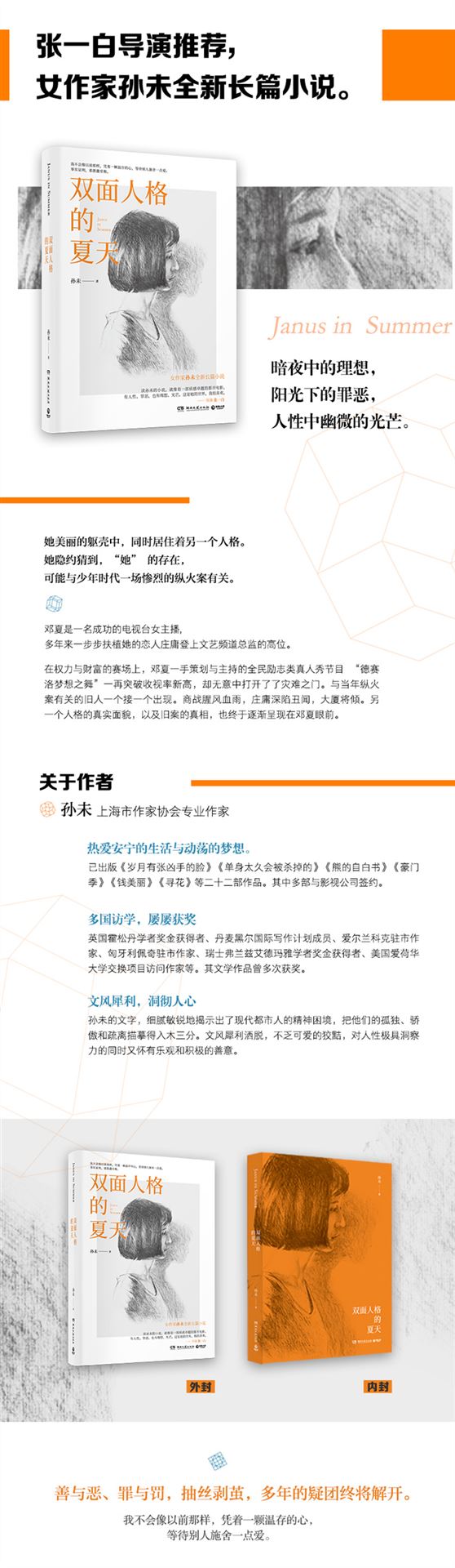“Reading Sun Wei's novel is like watching a movie: a soulful rendition of urban life. There is the good and the evil, the dream of the past and the light to the future. It's a world she has created, and I like it very much. ” -- Film Director Zhang Yibai