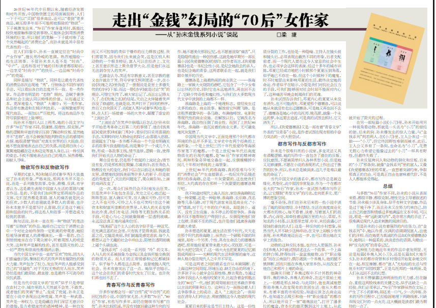 走出“金钱”幻局的“70后”女作家 ——从“孙未金钱系列小说”谈起